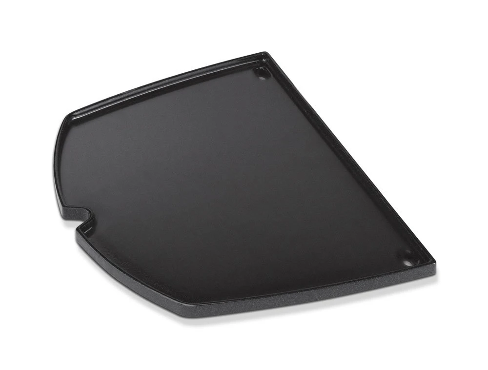 Vervaardigd van gietijzer. De plaat wordt in combinatie met het rooster gebruikt. Met twee geïntegreerde afdruipopeningen. Geschikt voor de Weber Q 300/3000-serie.