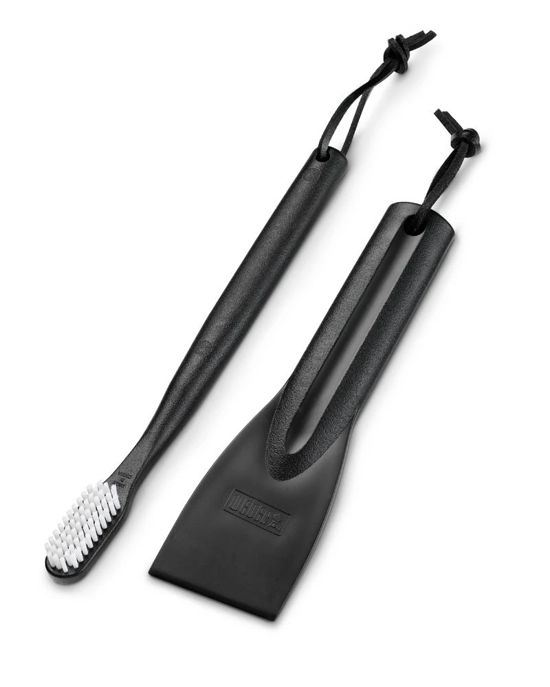 Bestaande uit een schraper en een borstel. Ideaal om de barbecue en de spinbescherming van de branders mee te reinigen. Geschikt voor gasbuitenkeukens vanaf de Spirit.